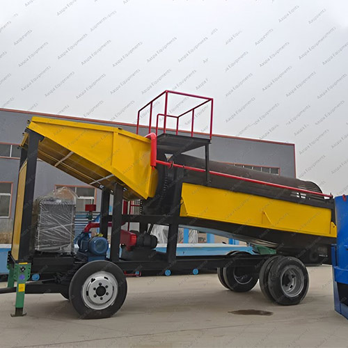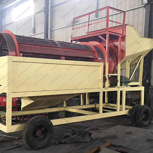 AGWP-308, having double Trommel Screen structure, shows good performance in raw-material input capacity, whatever the viscos-ity of inputting raw materials is. High-strength steel chassis of Trommel Screen protect it from the possible damages by in-putting of big-sized ore. Optional: Install mud crushing device in-side the